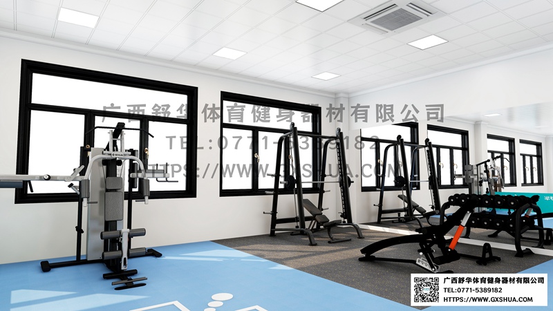 G6853史密斯机*1台,G5755腹肌板*1台,6付哑铃套组*1套,G599哑铃凳*1张,满足肌肉训练需求。铺设防滑、减震的地垫,为员工提供安全舒适的运动环境,同时减少器械使用时产生的噪音,安装大面积的镜子,增加空间的视觉感,方便员工在训练时观察自己的动作姿势,保证训练效果和安全性。